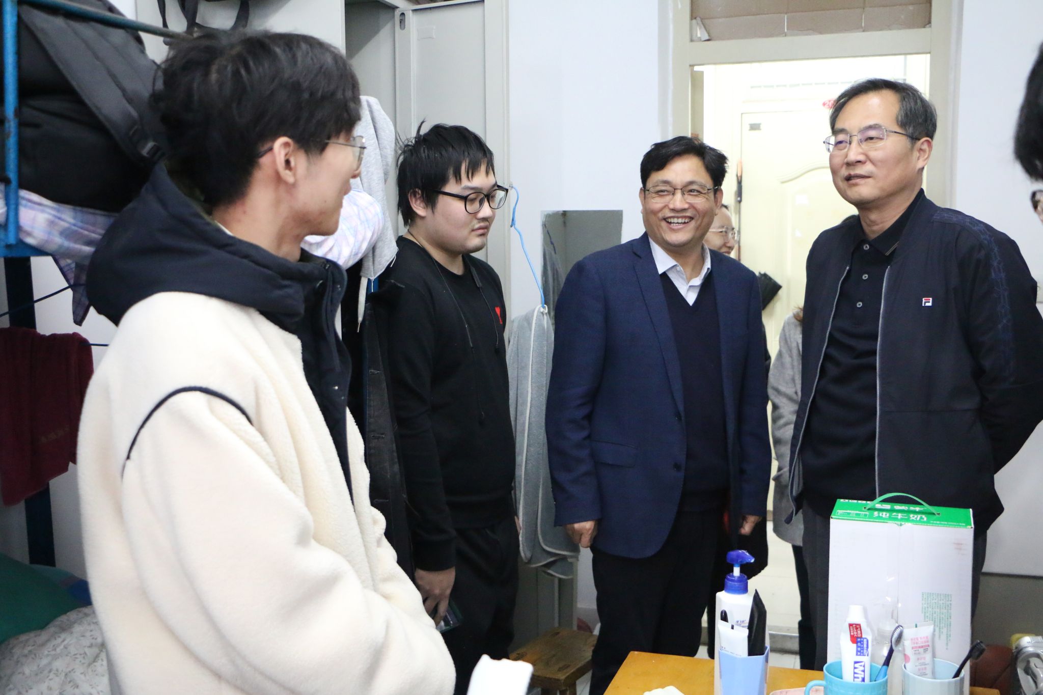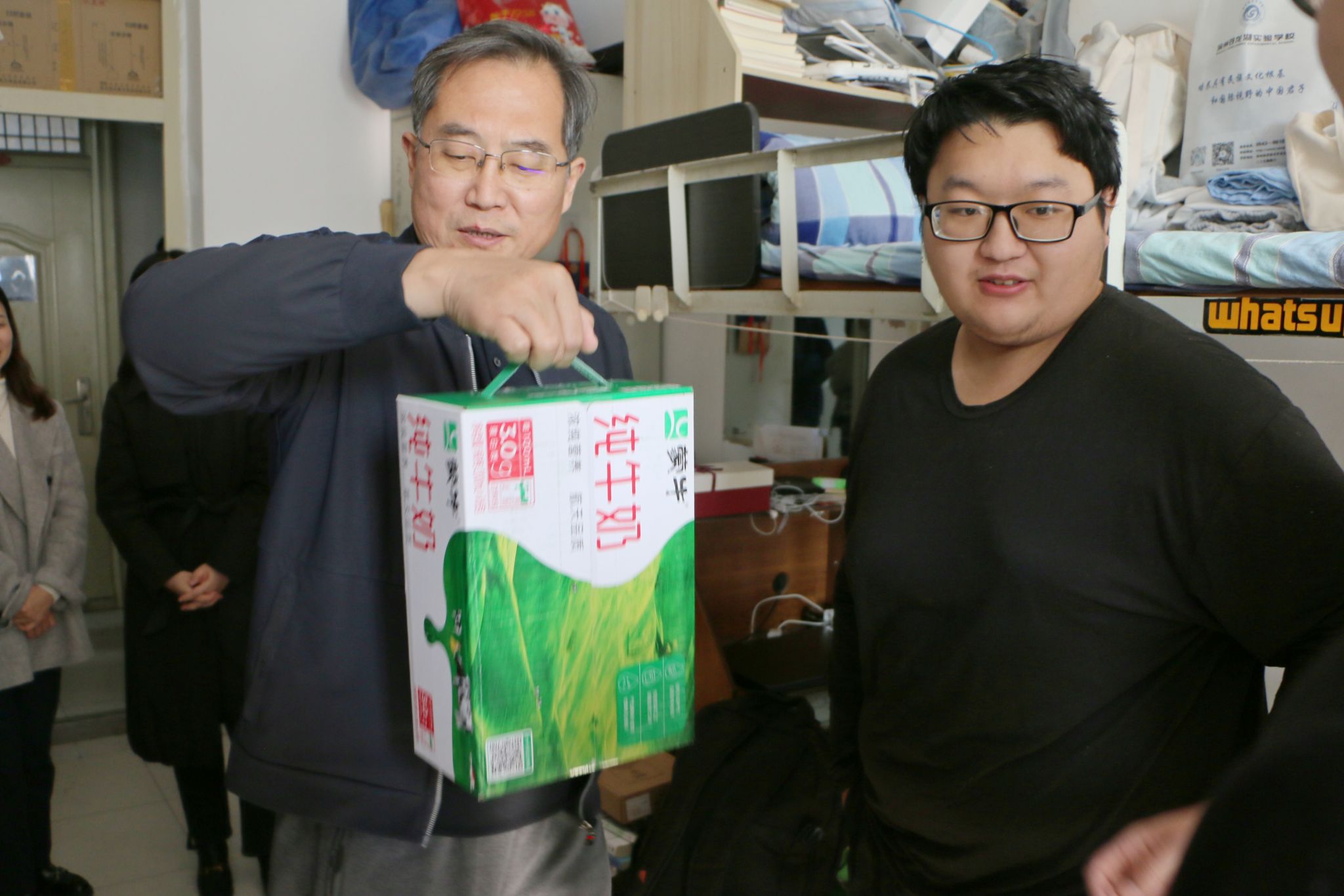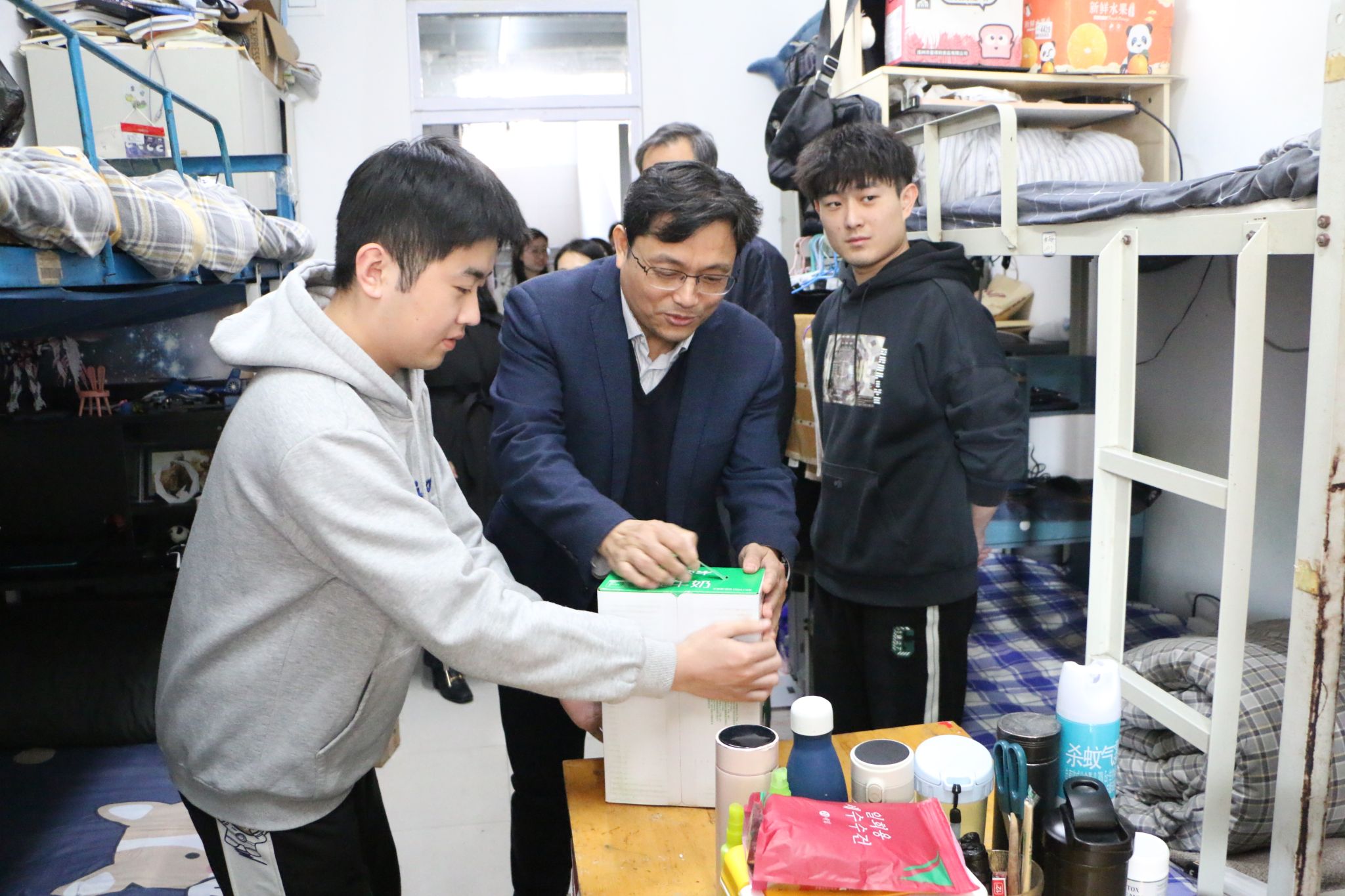 为帮助考研学子缓解备考压力,鼓舞考研士气,坚定考研信心,12月4日中午,化学化工学院开展2024届考研慰问活动。学院党委书记贺铭,院长陈国柱,副书记副院长白雪飞及全体辅导员深入学生宿舍进行慰问,为考研学子发发放慰问品。