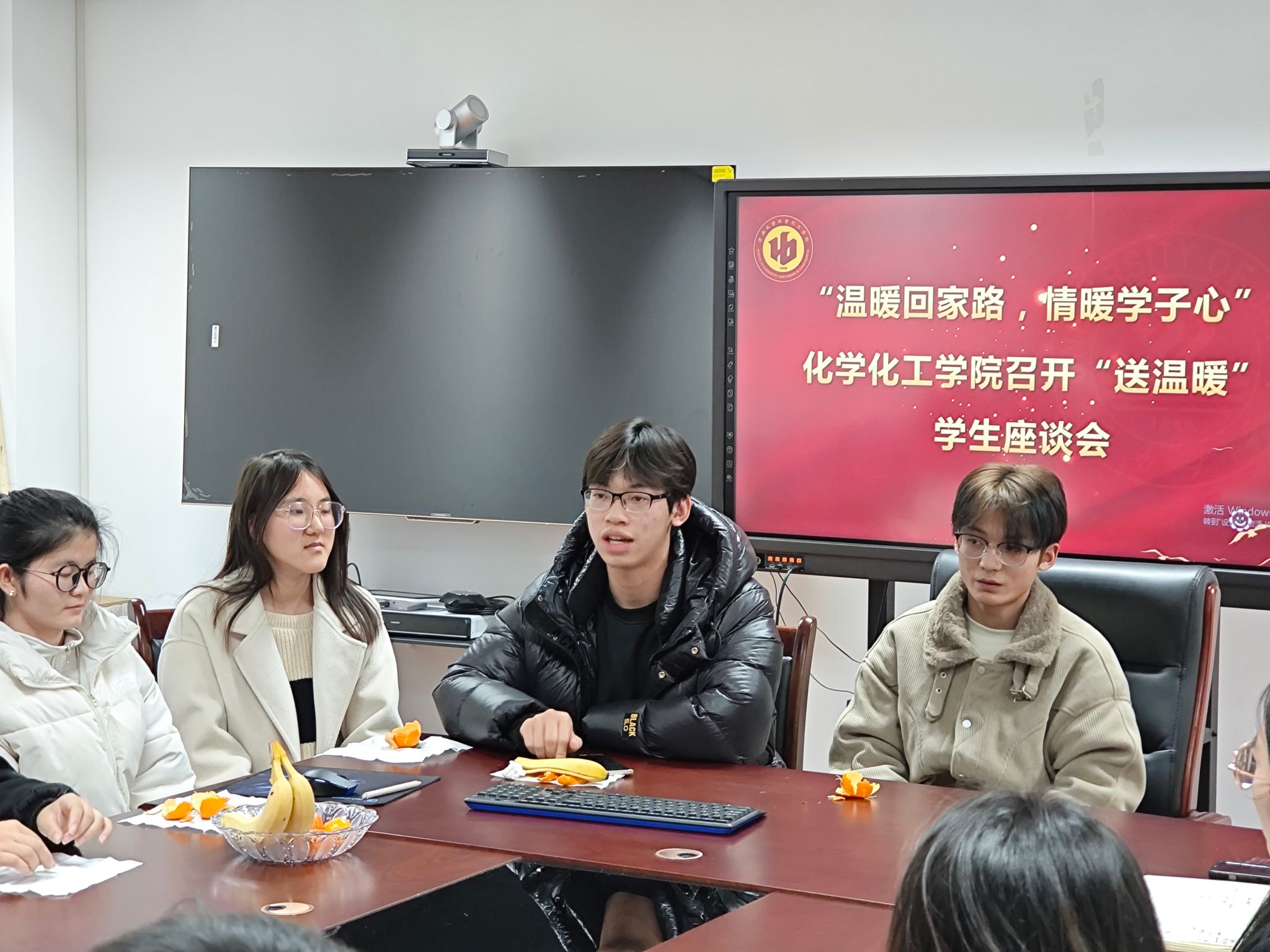为确保同学们度过一个温暖祥和的寒假及新春佳节,把国家和学校对学生的关怀落实落细,结合学校党委学生工作部(处)、后勤管理处《关于开展2024年寒假学生返乡路费补助工作的通知》,1月8日,化学化工学院召开“温暖回家路,情暖学子心”学生座谈会。学院党委副书记、副院长白雪飞,辅导员,学生代表参加会议。