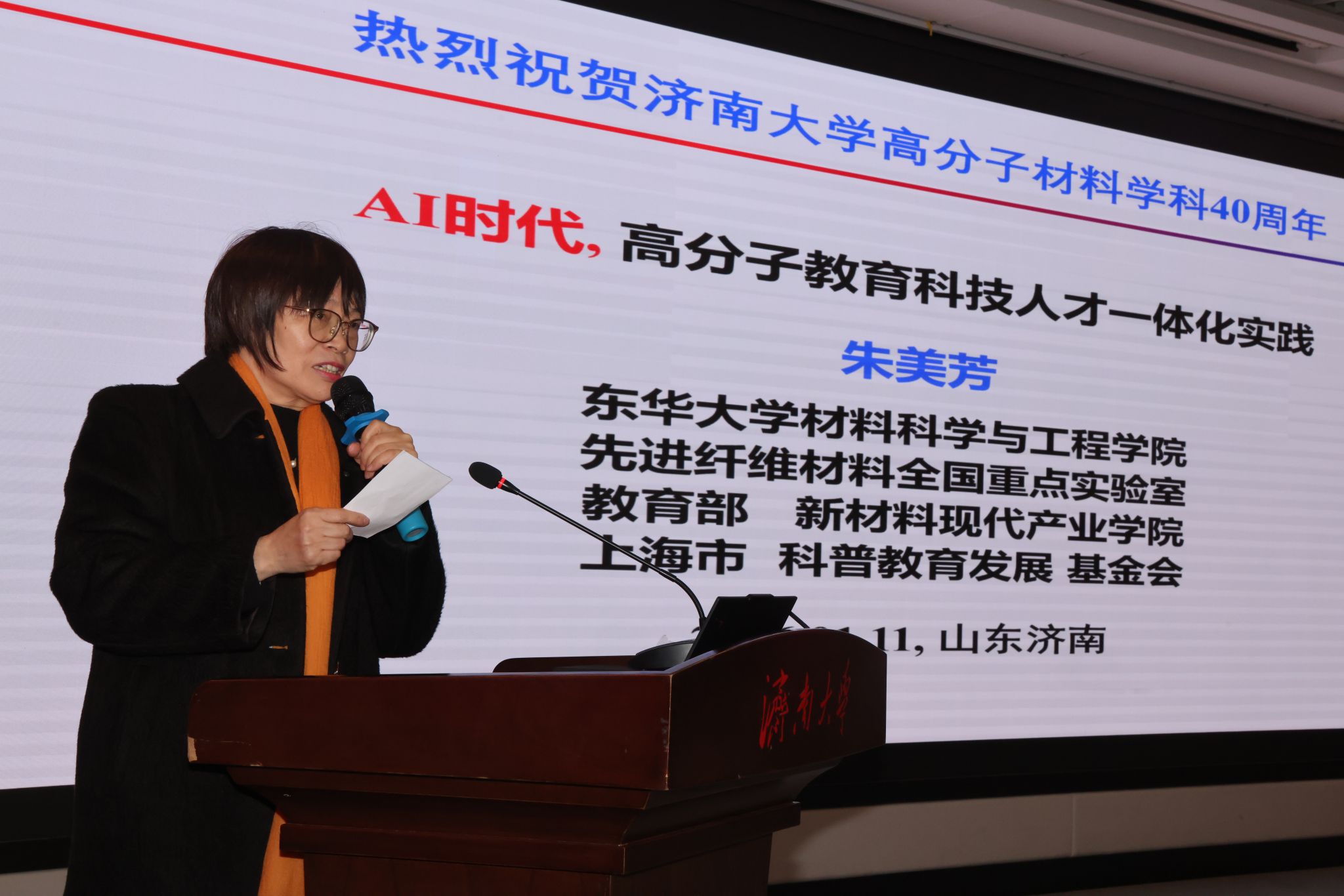 1月11日,济南大学高分子材料与工程专业办学40周年高质量发展大会在第一学术报告厅举行。中国科学院院士、东华大学教授朱美芳,中国科学院院士、浙江大学教授申有青,教育部高等学校材料类专业教学指导委员会秘书长、哈尔滨工业大学教授耿林,山东大学材料科学与工程学院院长周传健,济南大学党委书记刘春华,副校长徐征和,党委常委、副校长滕晋等出席大会,中国兵器工业集团、中国航空工业集团、京博集团、圣泉集团、泰山体育产业集团等合作单位代表受邀参会,相关职能部门负责人,化学化工学院历任党委书记、院长以及校友、师生代表一同回顾了专业四十年砥砺奋进的办学历程。大会由化学化工学院院长陈国柱主持。