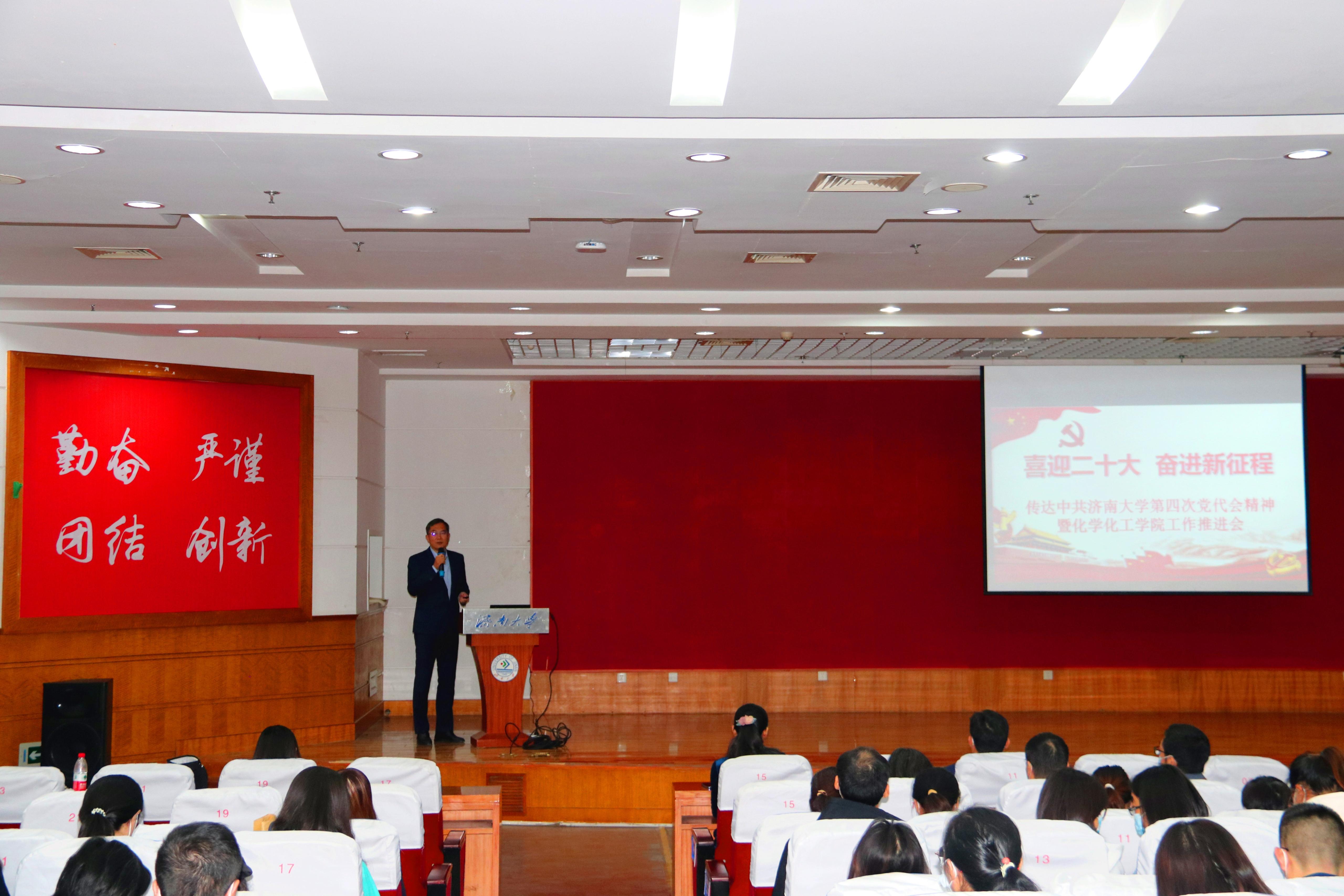 10月4日下午,为喜迎党的二十大胜利召开,进一步引导广大教职员工贯彻习近平新时代中国特色社会主义思想,化学化工学院(前沿交叉科学研究院、表面分析及化学生物研究院)在第二报告厅召开“喜迎二十大 奋进新征程”全院教职工大会,会议由学院党委书记贺铭主持。