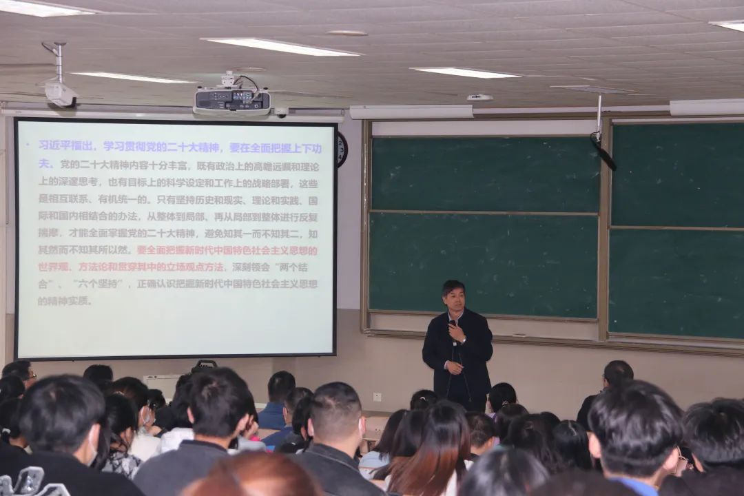 学习二十大,永远跟党走,奋进新征程。为深入学习领会、全面贯彻落实党的二十大精神,化学化工学院于10月28日在第十一教学楼六段502教室召开学习党的二十大精神专题辅导报告会。