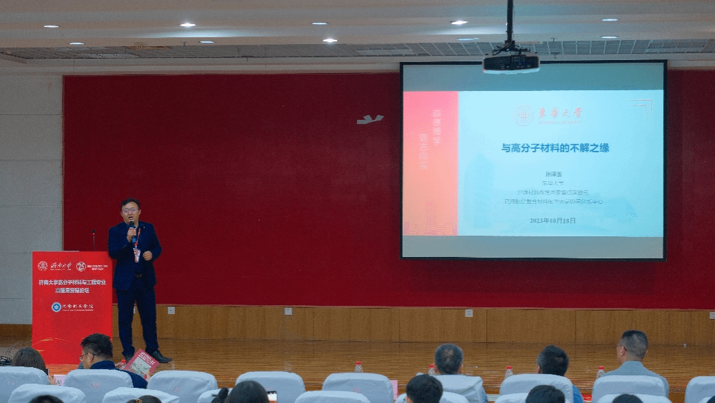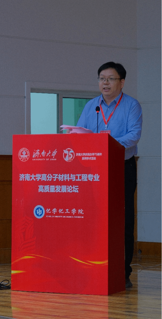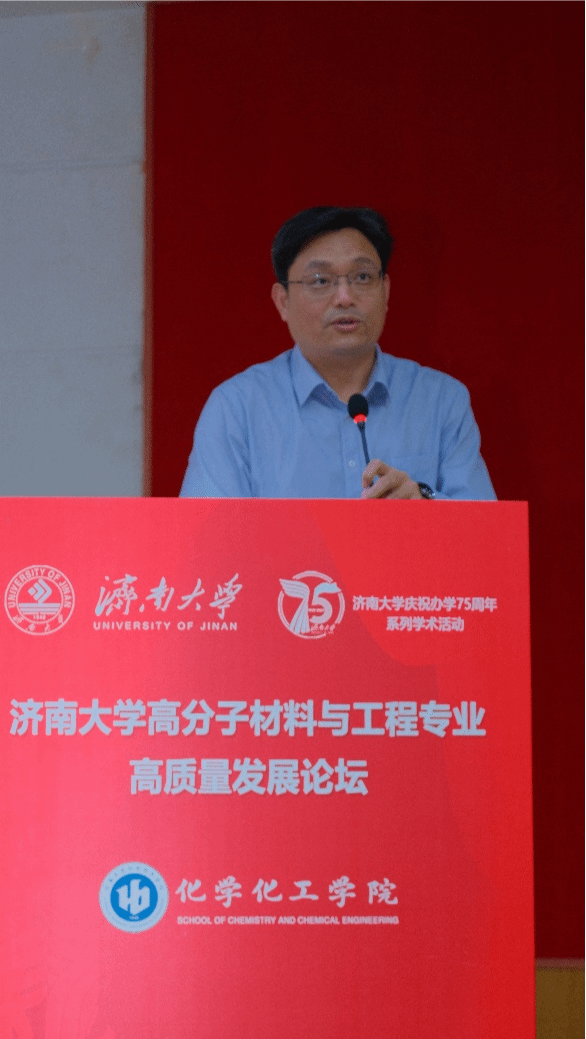 2023年10月18日下午,值济南大学办学75周年之际,化学化工学院在第二学术报告厅举办高分子材料与工程专业高质量发展论坛,邀请山东威高新生医疗器械有限公司副总经理吕汝举、中国兵器工业集团第五三研究所副所长荀其宁、东华大学副教授孙泽玉、青岛森丰塑胶包装制品有限公司总经理李木森和福建天利高新材料有限公司总经理林志祥等高分子专业杰出校友给本科生讲授《专业导论》、作学术报告。化学化工学院院长陈国柱、副院长李辉和高分子系教师代表、校友代表等参加了论坛。论坛由化学化工学院副院长李辉主持。