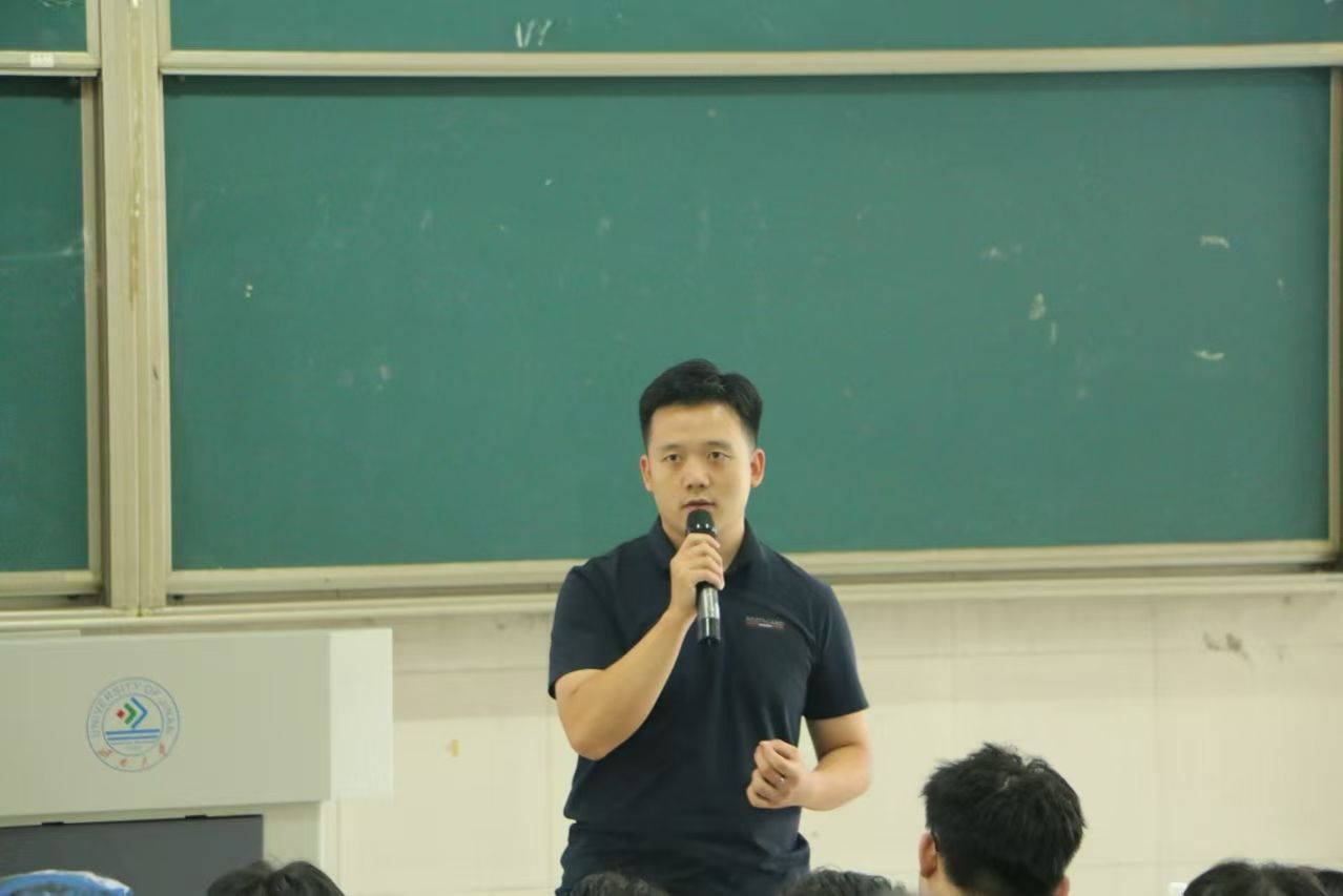 院长陈国柱向新生们开启人生新旅程、学习新篇章、生活新体验表示祝贺,向2024级新生介绍了学校的历史沿革、办学特色及学院的具体情况,并围绕学院专业情况、实验设施设备、科研论文情况、对外学习交流等方面介绍了学院的发展历程和近年来取得的突出成绩,勉励广大新生以杰出校友为榜样,在科创学术、专业学习的道路上勇创佳绩,最后,他寄语新生“同心共济,大有作为”,用理想信念照亮四年前行之路。