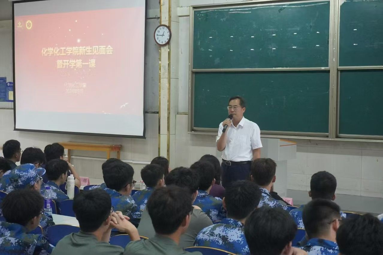 为进一步帮助新生明确奋斗目标,尽快完成角色转变,适应大学学习生活,激励学生以饱满热情和昂扬斗志迎接崭新篇章,9月5日,化学化工学院举行2024级新生见面会暨开学第一课,学院领导班子、全体辅导员出席会议,2024级全体本科新生参会,活动由2024级新生辅导员李健慧主持。