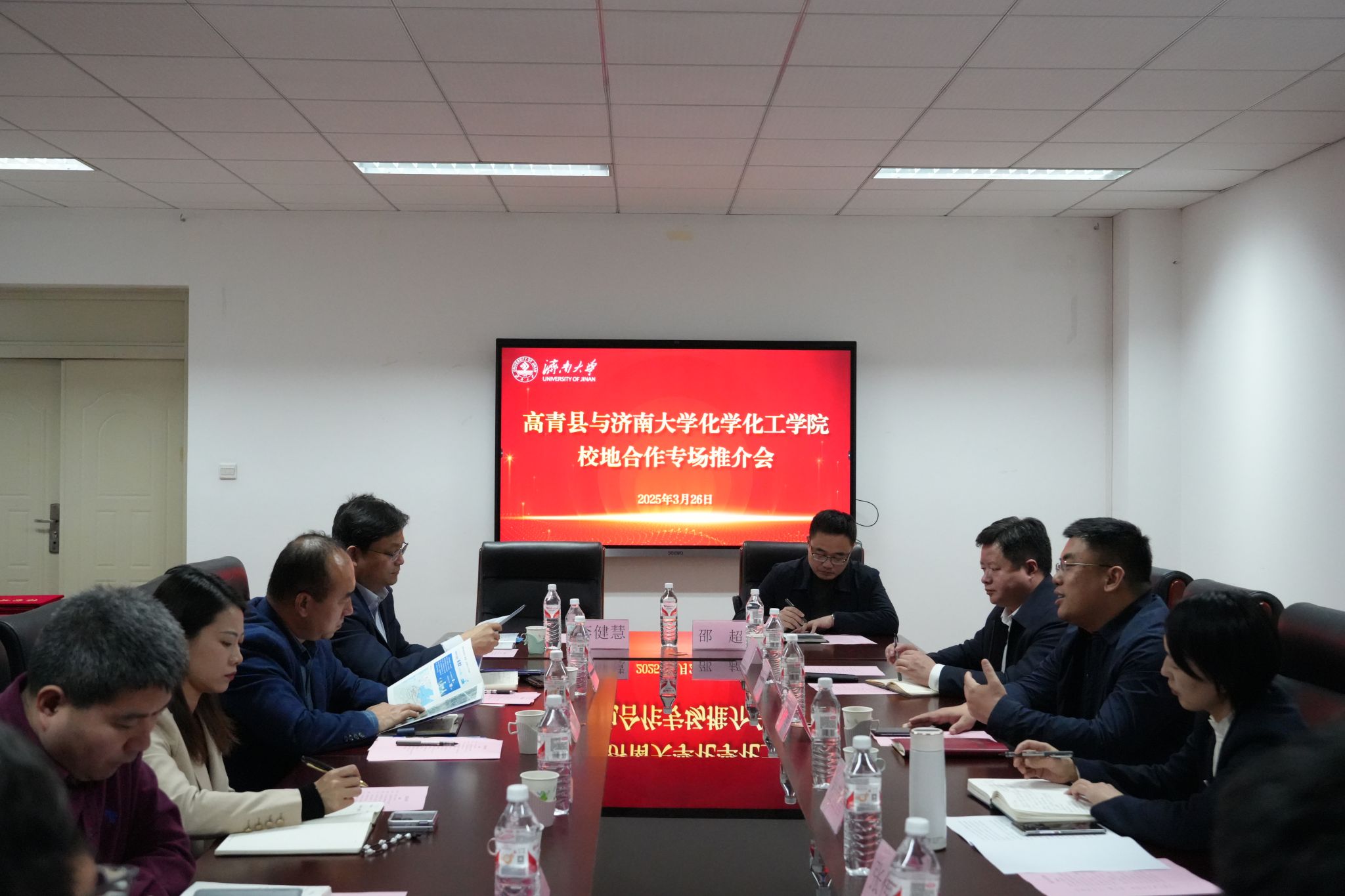 化学化工学院院长陈国柱对郑祥军一行来访表示热烈欢迎,对高青县长期以来给予学院发展的关心与支持表示衷心感谢。他简要介绍了济南大学及化学化工学院在学科建设、人才培养、师资队伍、科技创新等方面的资源优势,强调学院在高性能氟材料、绿色化工等领域的学科特色,并期待通过校地合作实现人才供给与产业需求精准对接,赋能区域经济高质量发展。