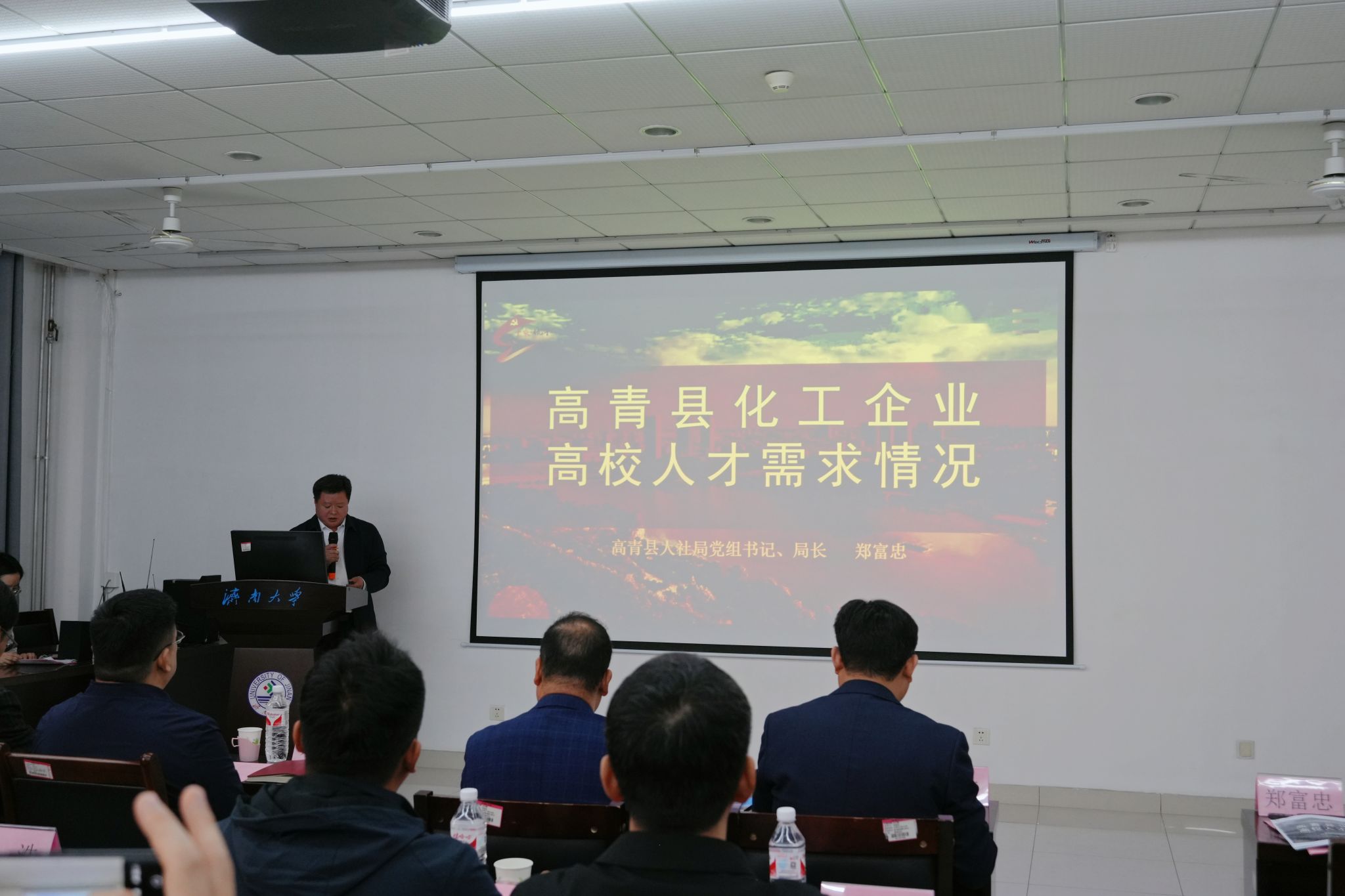 郑祥军对化学化工学院在淄博市高青县人才引智方面的支持表示感谢。他表示,此次推介会为校地合作搭建了长效平台,是县域产业与高校资源的“双向奔赴”。希望双方围绕人才共育、技术共研、资源共享持续发力,为区域高质量发展注入新动能。
