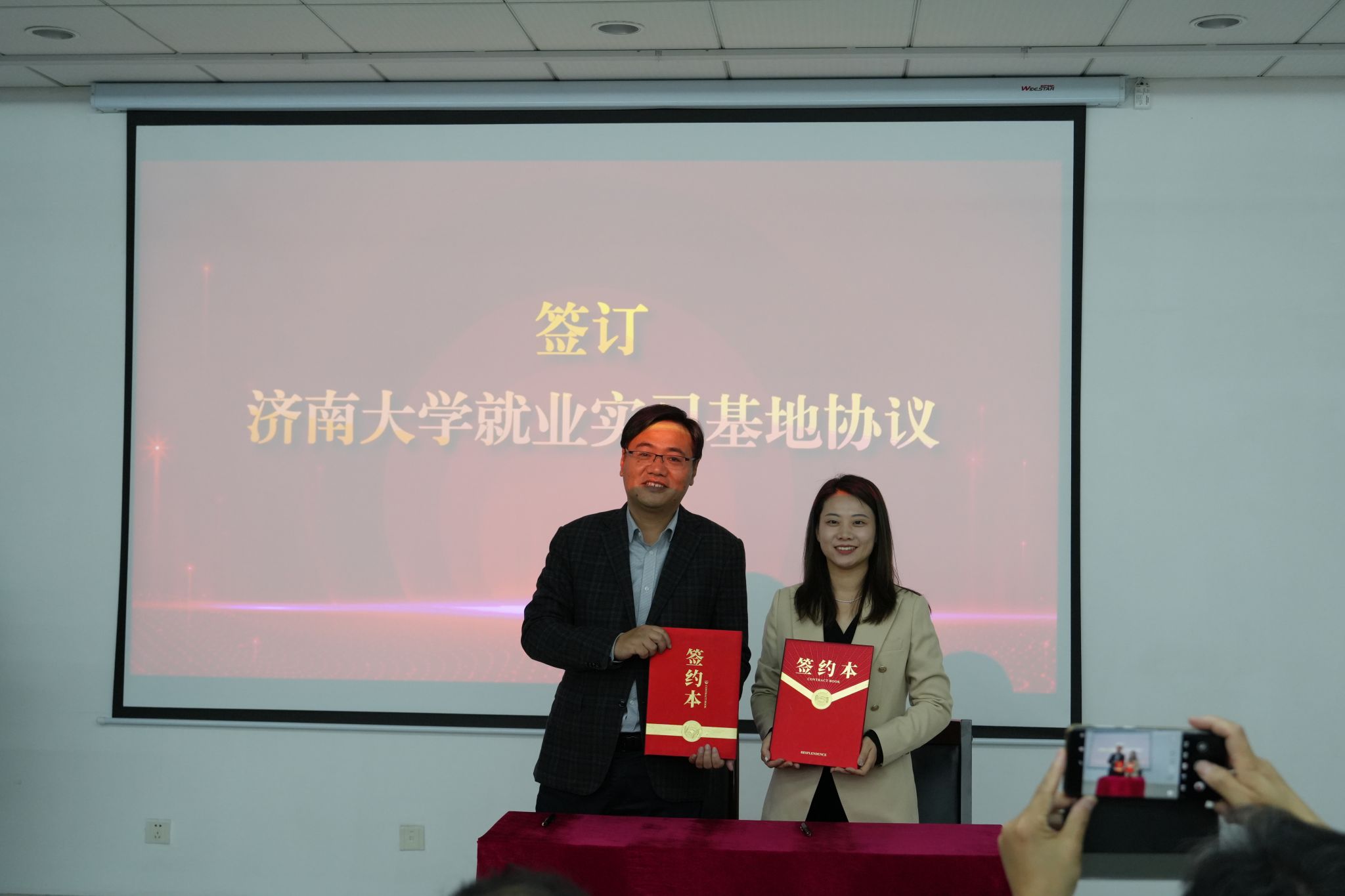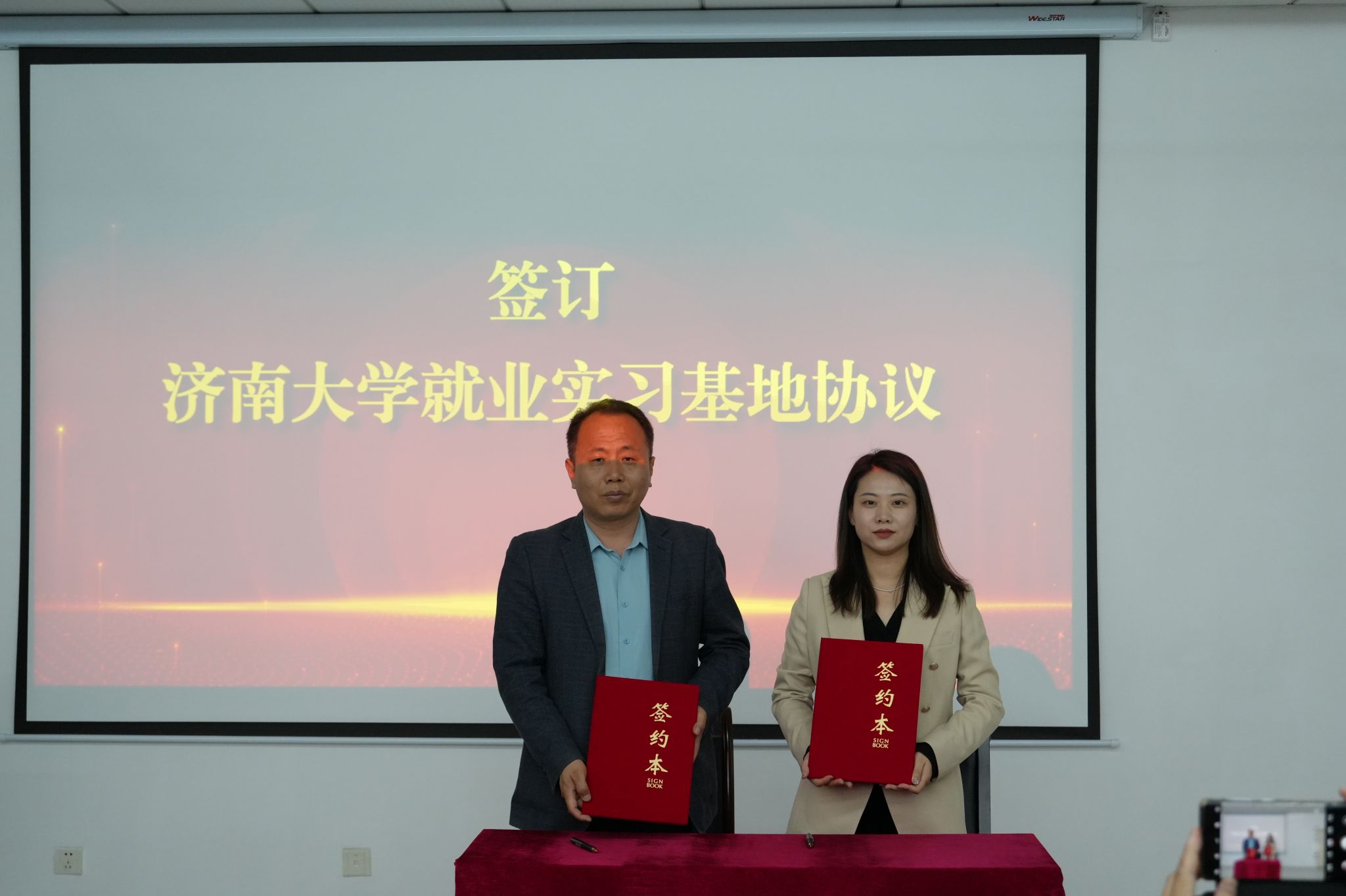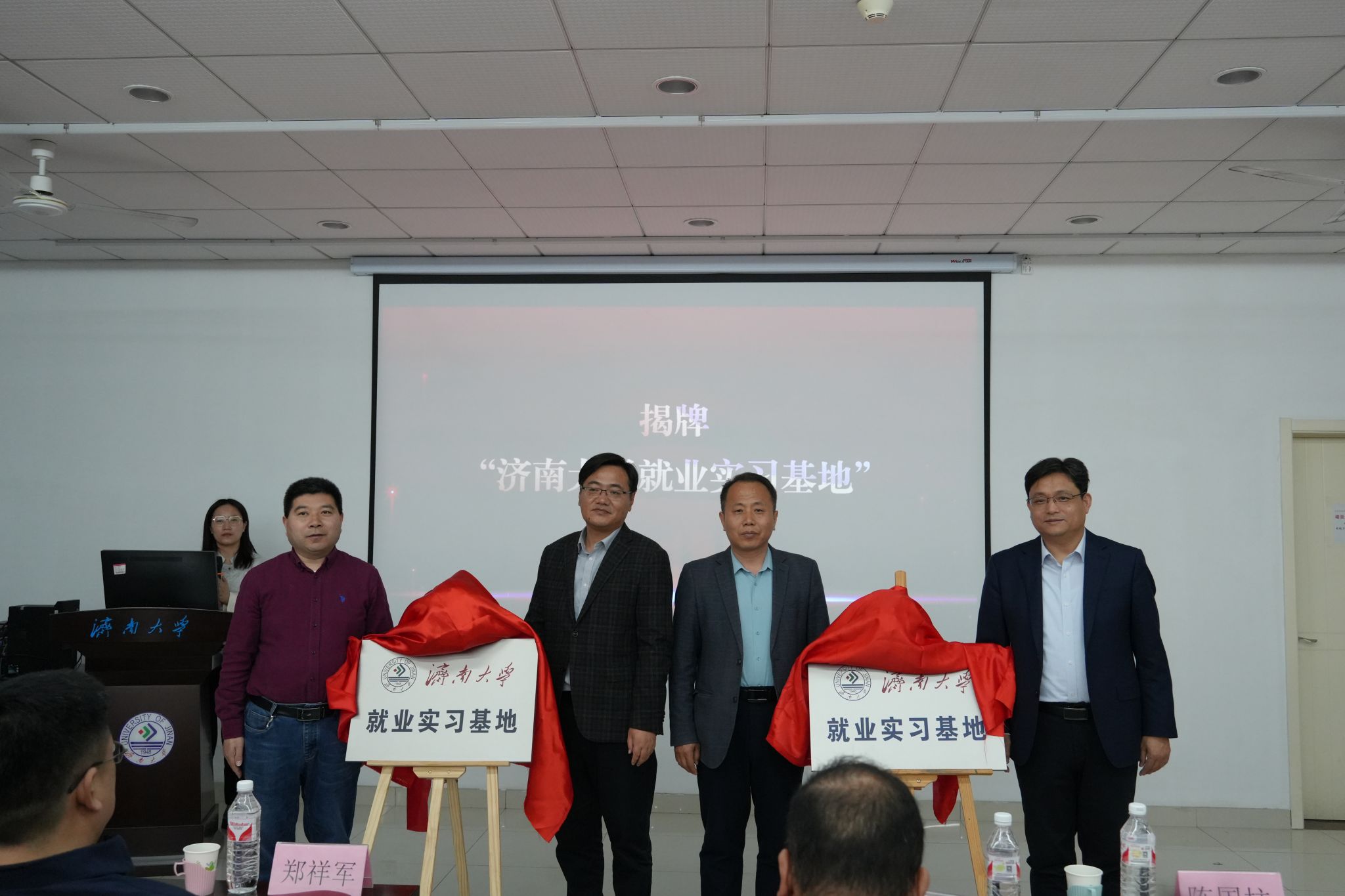 座谈会上,双方围绕人才引育共享、科技成果转化、共建产业创新研究院、校地协同高质量发展等议题展开深入探讨。与山东齐氟新材料有限公司、澳宏(山东)环保材料有限公司签署《济南大学就业实习基地协议》,并为“济南大学就业实习基地”揭牌。郑祥军为氟化学化工材料重点实验室主任耿兵教授颁发“招才引智大使”聘书。