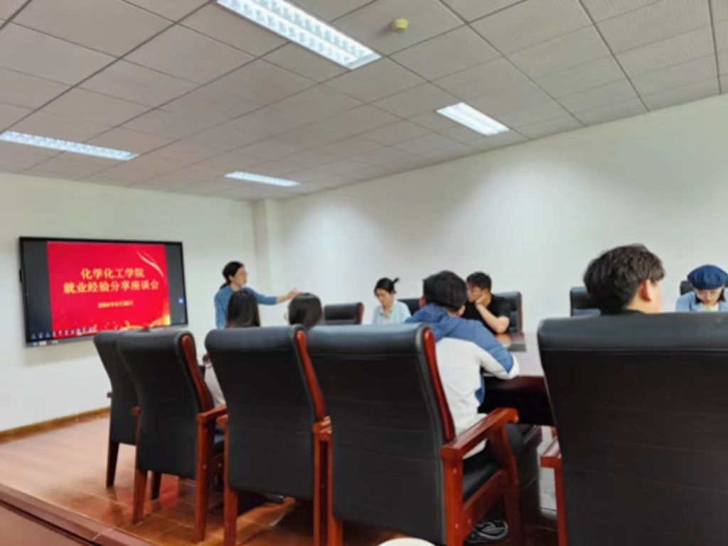为深入学习贯彻党的二十大精神,落实党中央、国务院“稳就业”“保就业”决策部署,引导学生树立正确的就业观、择业观,促进学生高质量就业,2024年4月26日化学化工学院召开了“就业·有为青年经验分享会”,梅金飞、智慧、刘瑞莹、于浩、廖甜等7名就业典型做分享发言,三十余名研究生代表参会学习交流。
